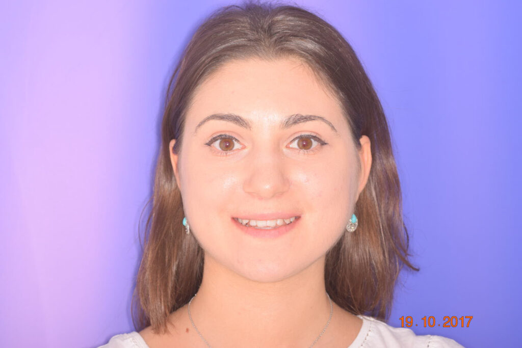 Adhering to the principles of Face First Orthodontics, the primary objective was to increase midface support by expanding the upper maxilla, fixing the cross bite, and aligning the teeth. Closing the open bite was a secondary objective.