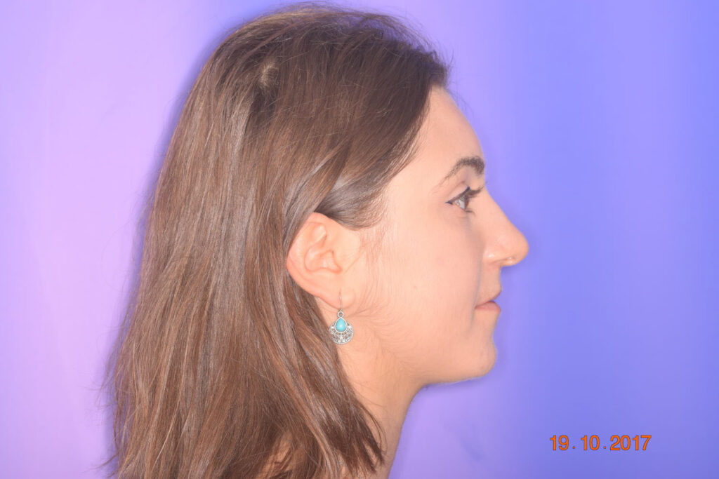 A 27-year-old female patient presented with class III malocclusion, 15 mm crowding in the upper arch, an anterior open bite, a lateral crossbite, and a total ABO score of 29. Her facial profile was straight with a retrusive maxilla, and the upper and lower incisors were retroclined. An extreme lack of midface support was also noted, and the constricted dental arches resulted in a poor smile width and dark buccal corridors. No myofunctional investigations were performed at the time, as they were initially considered unnecessary.